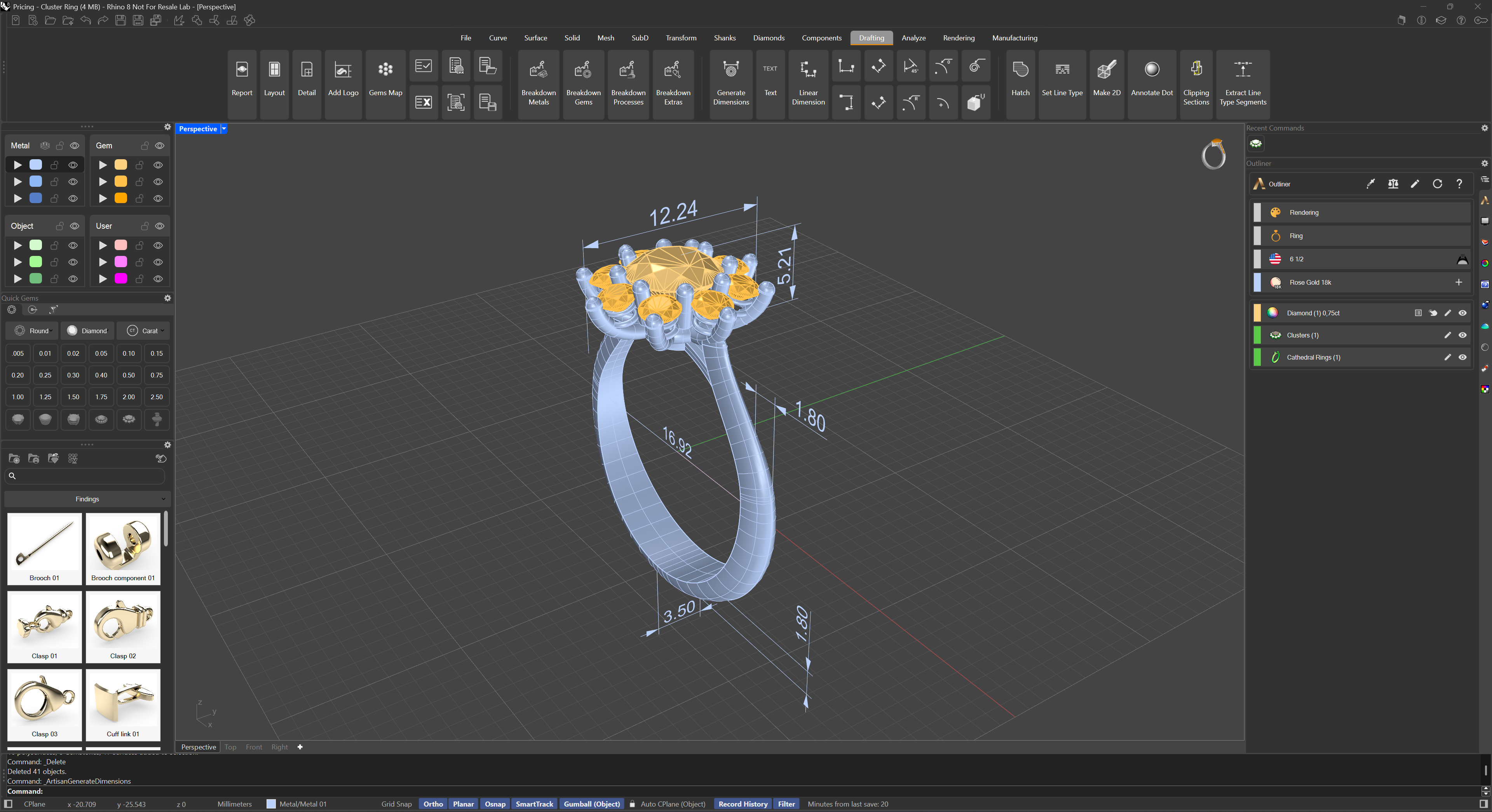 Generate DimensionsGenerate Dimensions is a one-click tool that extracts and displays the key measurements of a ring design. It is intended to streamline the dimensioning process and ensure consistency across technical documentation and client reports.