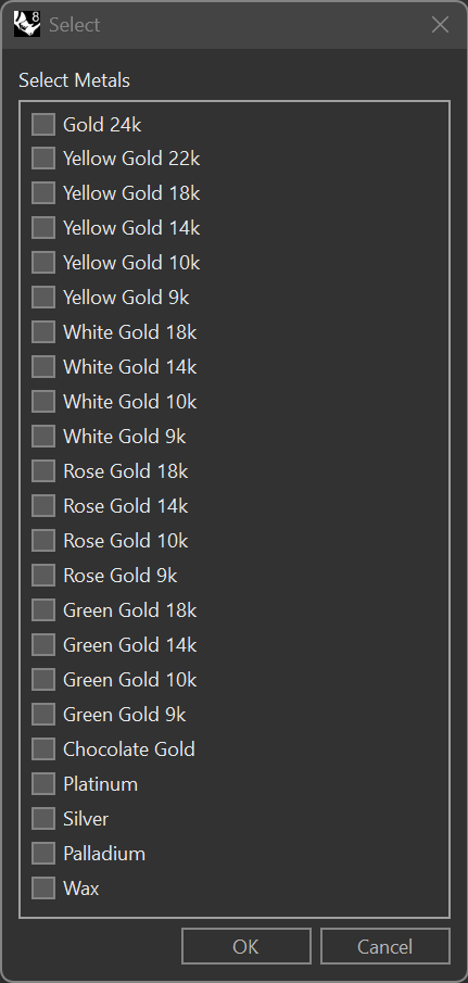 The **Metals List** command provides a streamlined way to document the metals used in a design.&#x20;