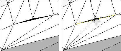 The SplitMeshEdge command divides a mesh edge to create two or more triangles.