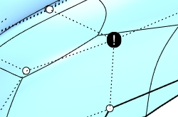 When edges fail to insert, the defective geometry is marked with a text dot. The secondary text in the text dot properties gives a hint of what should be repaired.
