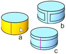 a) Input, b) IgnoreSeams=No, c) IgnoreSeams=Yes