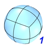 Creates a quad SubD sphere with the vertices evenly distributed. A quad SubD sphere starts from a cube (a regular polyhedron with 6 faces). It is then subdivided by the times specified in the Subdivisions option.