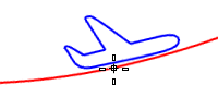 Perpendicular: Orients the object perpendicular to the curve. The perpendicular plane is determined by the current construction plane when the base point is picked.