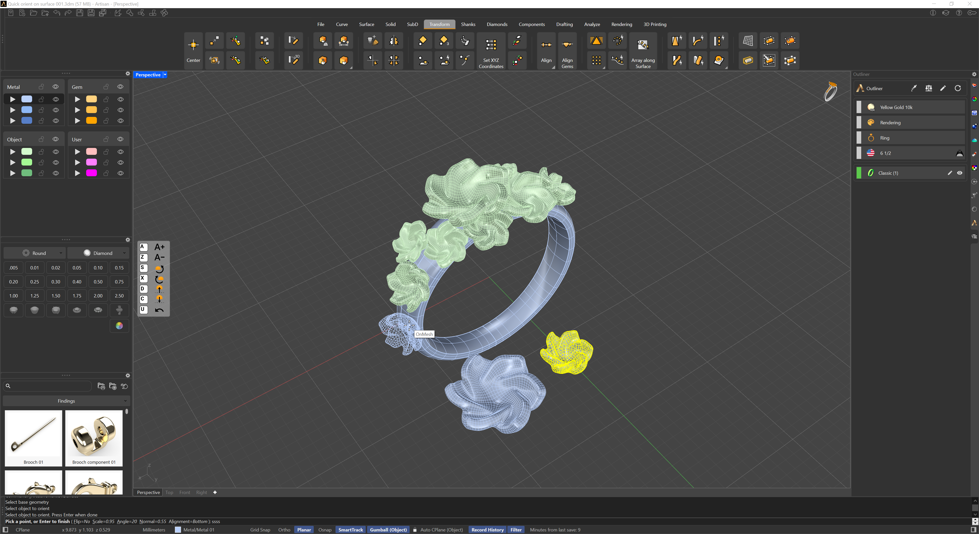 Goldsmith Tip: This tool is essential for designing pieces that require the addition of decorative elements in a balanced and visually appealing way. It allows you to intuitively experiment with the placement, adjusting the position and distribution of objects until you achieve the most aesthetically pleasing arrangement, relying on visual judgment.