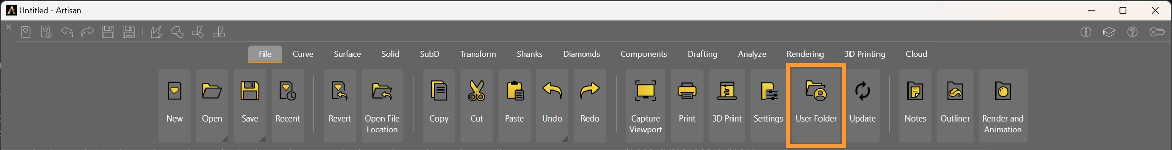 In Rhino, you will find the icon User Folder on the RhinoArtisan toolbar