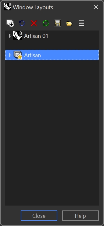 The Window Layout window will appear. Then, double-click in Artisan, restoring us to its original layout.