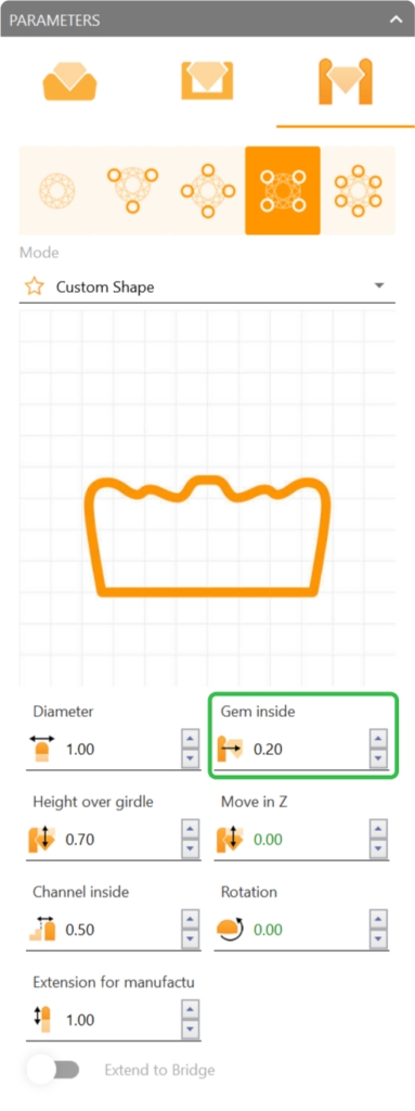 Go to the "Prongs" tab and select the 4th option. Set the gem inside to 0.2 millimeters.
