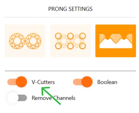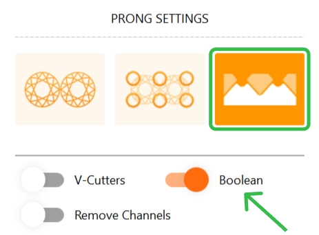 In the "Prong Settings" section, activate the third option (scalloped) and the "Boolean" mode.