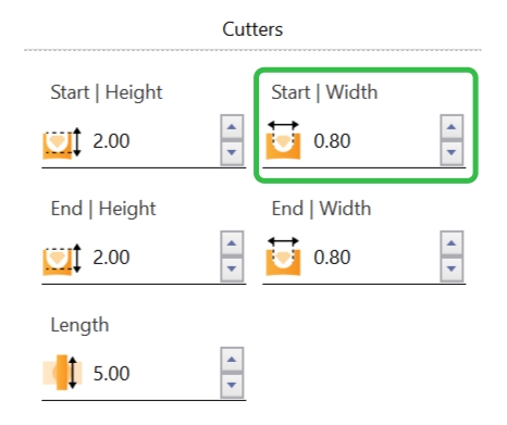 Adjust the cutter Start width to 0.8 milimiters.