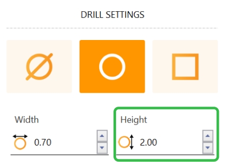 Activate the "V-Prongs" mode. In the drill options, change the width of the Drill to 2 millimeters.