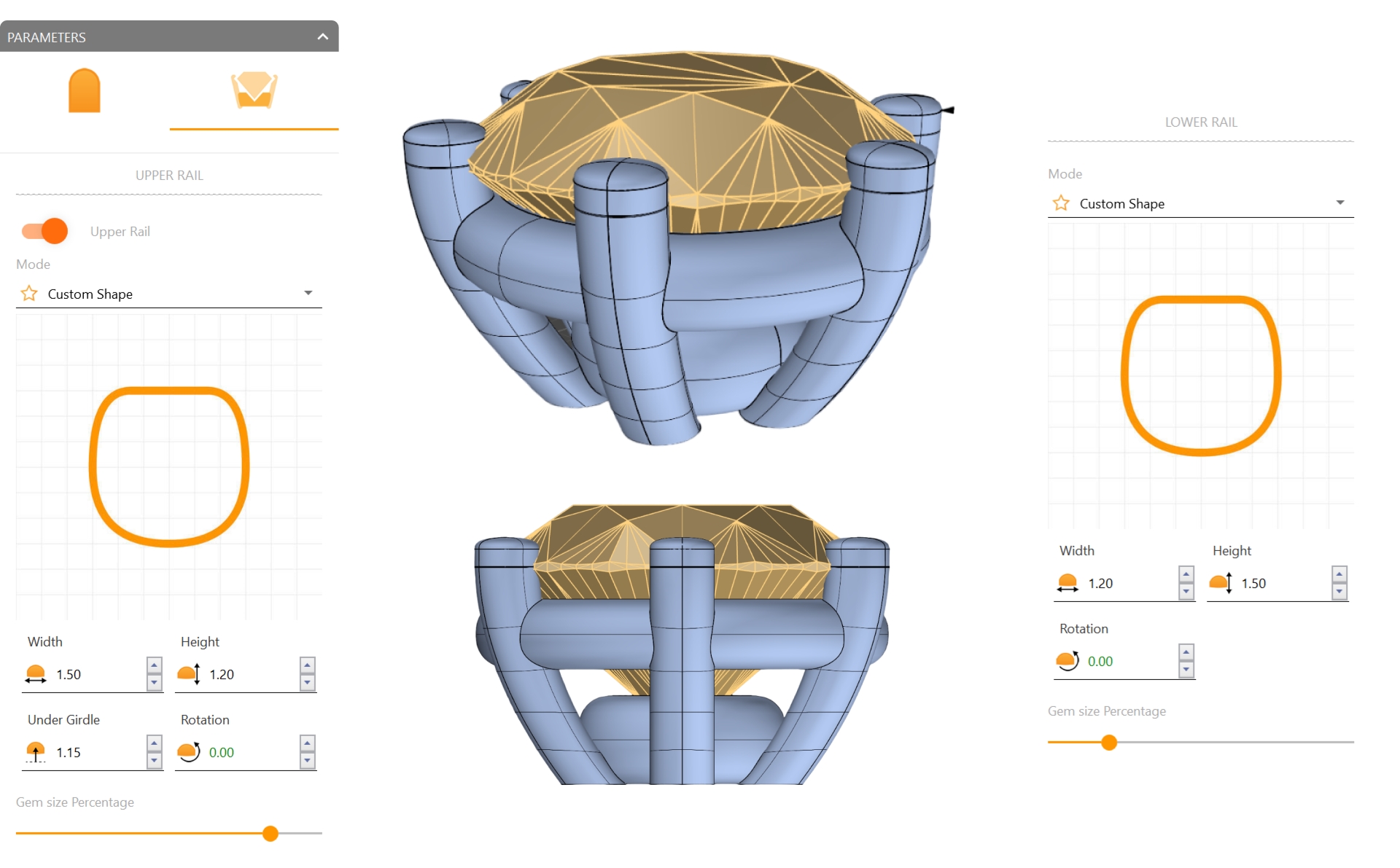 In the Rail options, adjust the parameters for the Upper Rail: