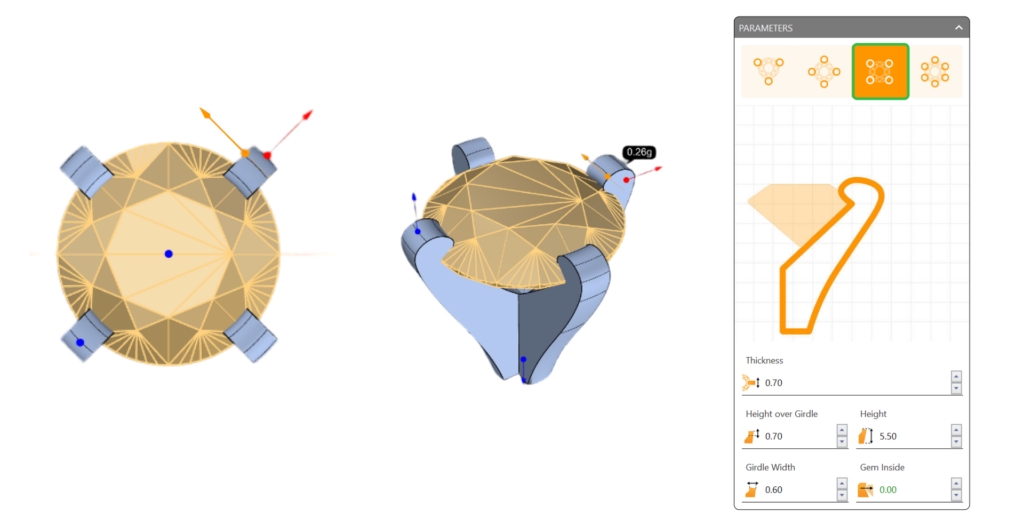 Select the gem and use the Peg Head command from the Diamonds tab.