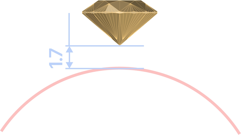 Using the gumball, move the gem 1.7 millimeters upward from the culet.