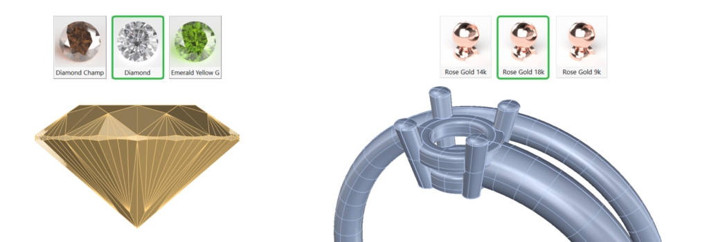 Apply 18k Rose Gold to the metals.