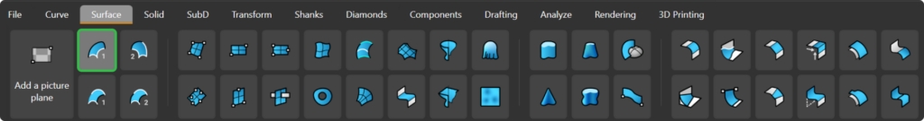 With the two profiles created, go to the Surface tab and select the Sweep 1 Rail command.