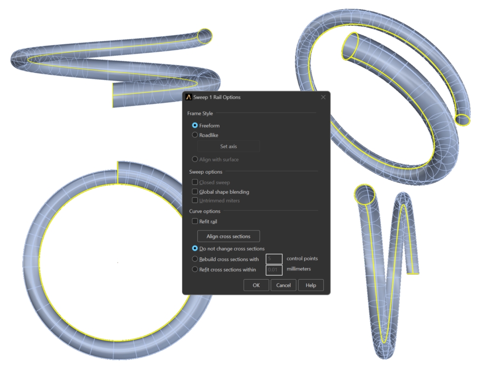 Objective: Perform a sweep to create the shank using the helix and profiles.