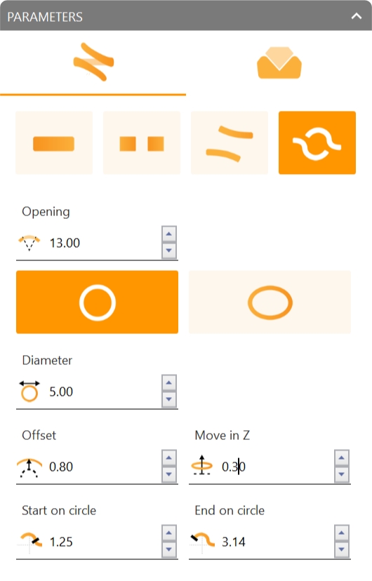 Set the opening parameters.