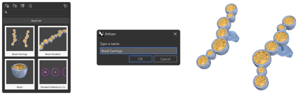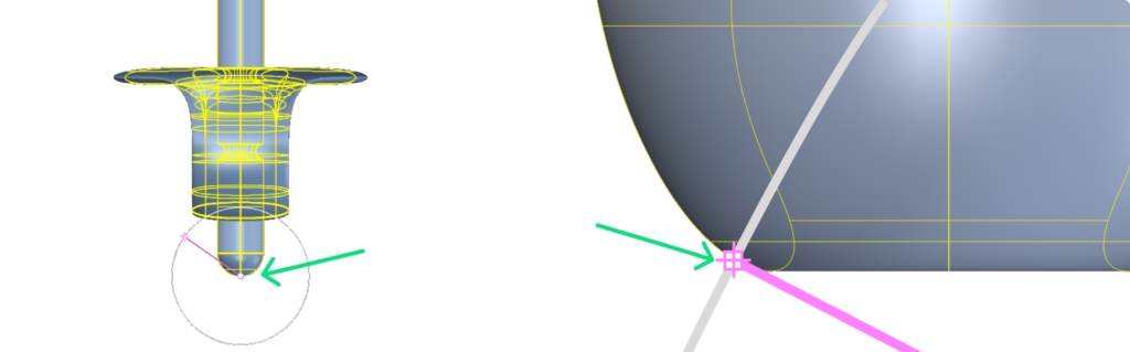 Type Rotate in the command bar, select both earrings, and choose the bottom point of the earring post as the base point. Select the bezel point that touches the reference curve's tangent line.