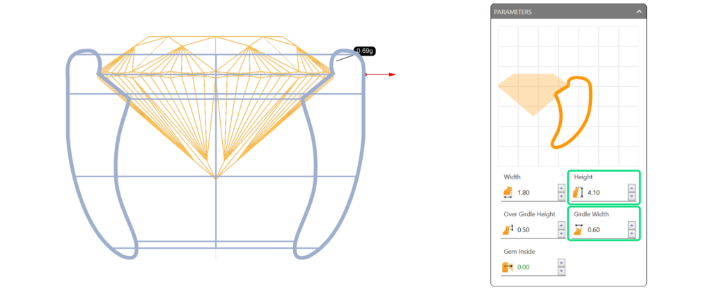 Objective: Create and customize a bezel setting for the top gemstone.