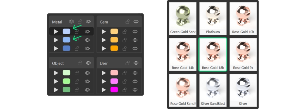 Now, using the Layer panel, right-click on the metal layers to select them and apply the Rose Gold 18k material.