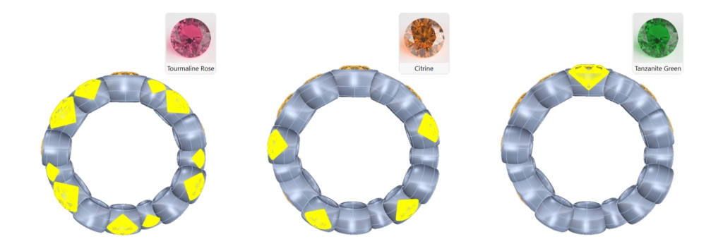 Apply Tourmaline Rose to these selected gems and apply Citrine to the remaining ones.