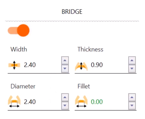 For the bridge, change the thickness to 0.90 millimeters and the diameter to 2.40 millimeters.