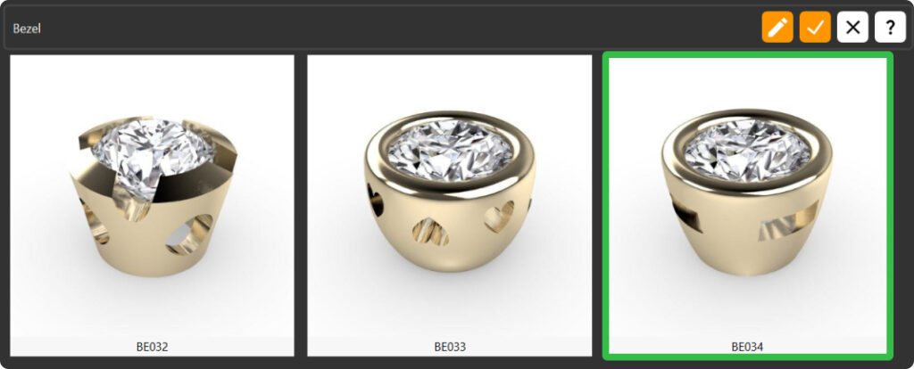 In the "Diamonds" tab, select the Gem and then the "Bezel" command.