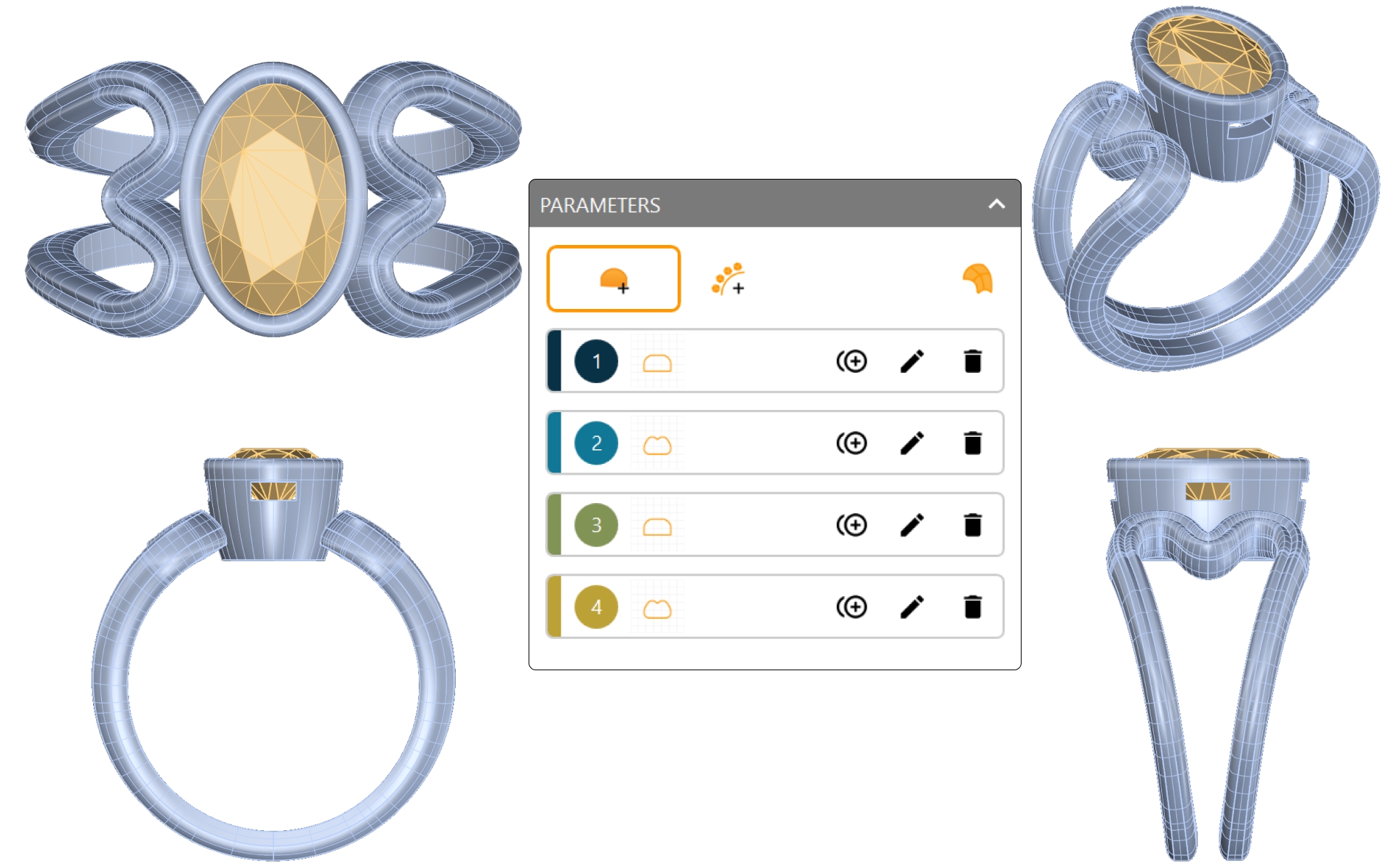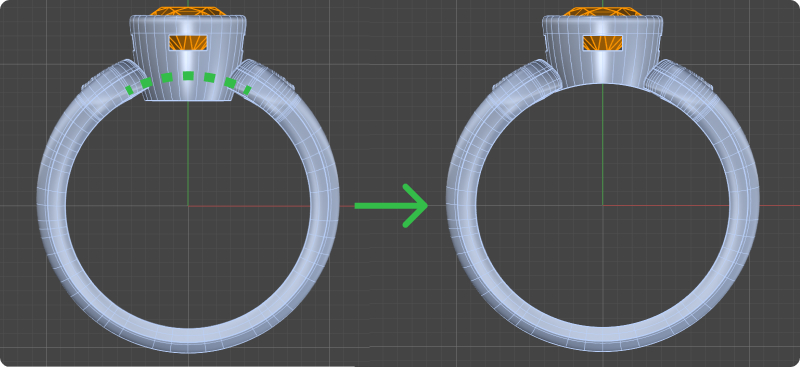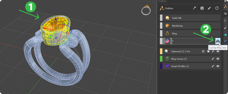 Cut the bezel to match the height of the shank curve by selecting the "Cut" icon in the "Outliner."