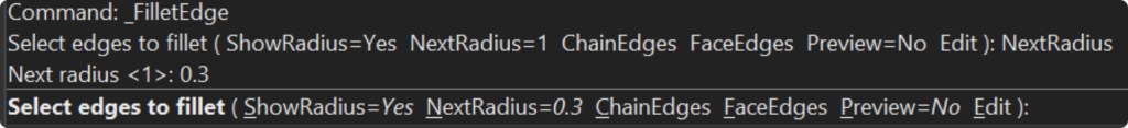 In the "Solid" tab (1), select the "Fillet Edge" command (2).