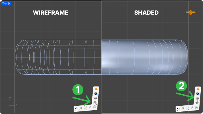 TIP: Use the shaded mode for better visualization of the model. Change it in the right corner of each viewport. (1)Wireframe - (2) Shaded