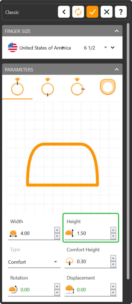 Adjust the parameters of the model by changing the Height to 1.5 millimeters.