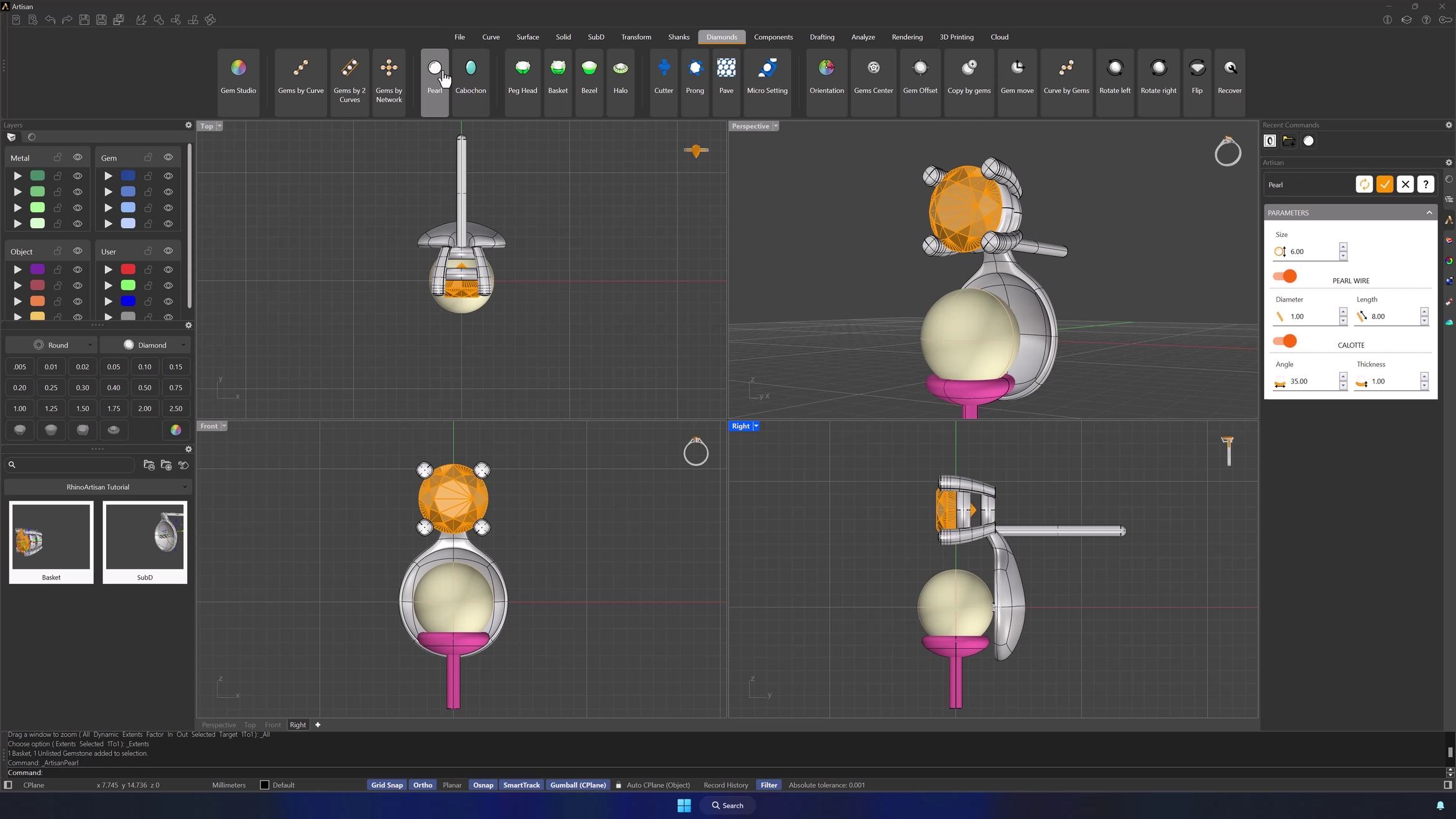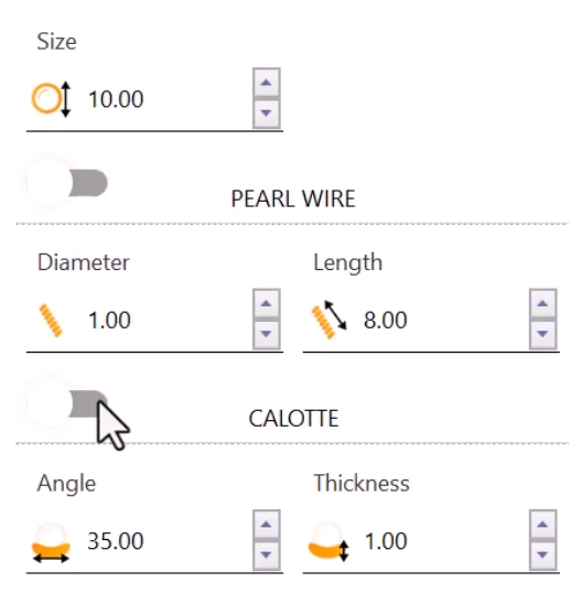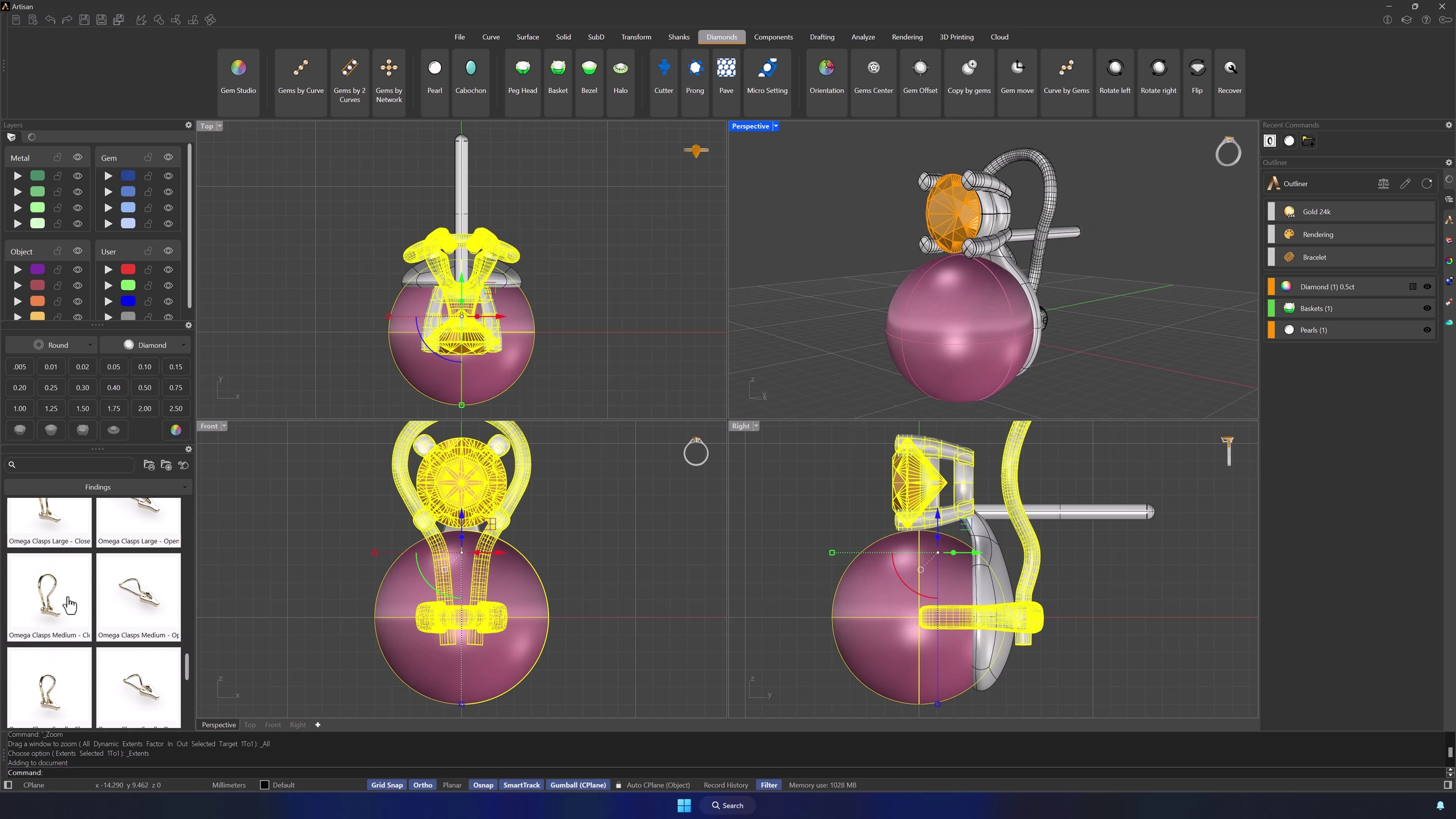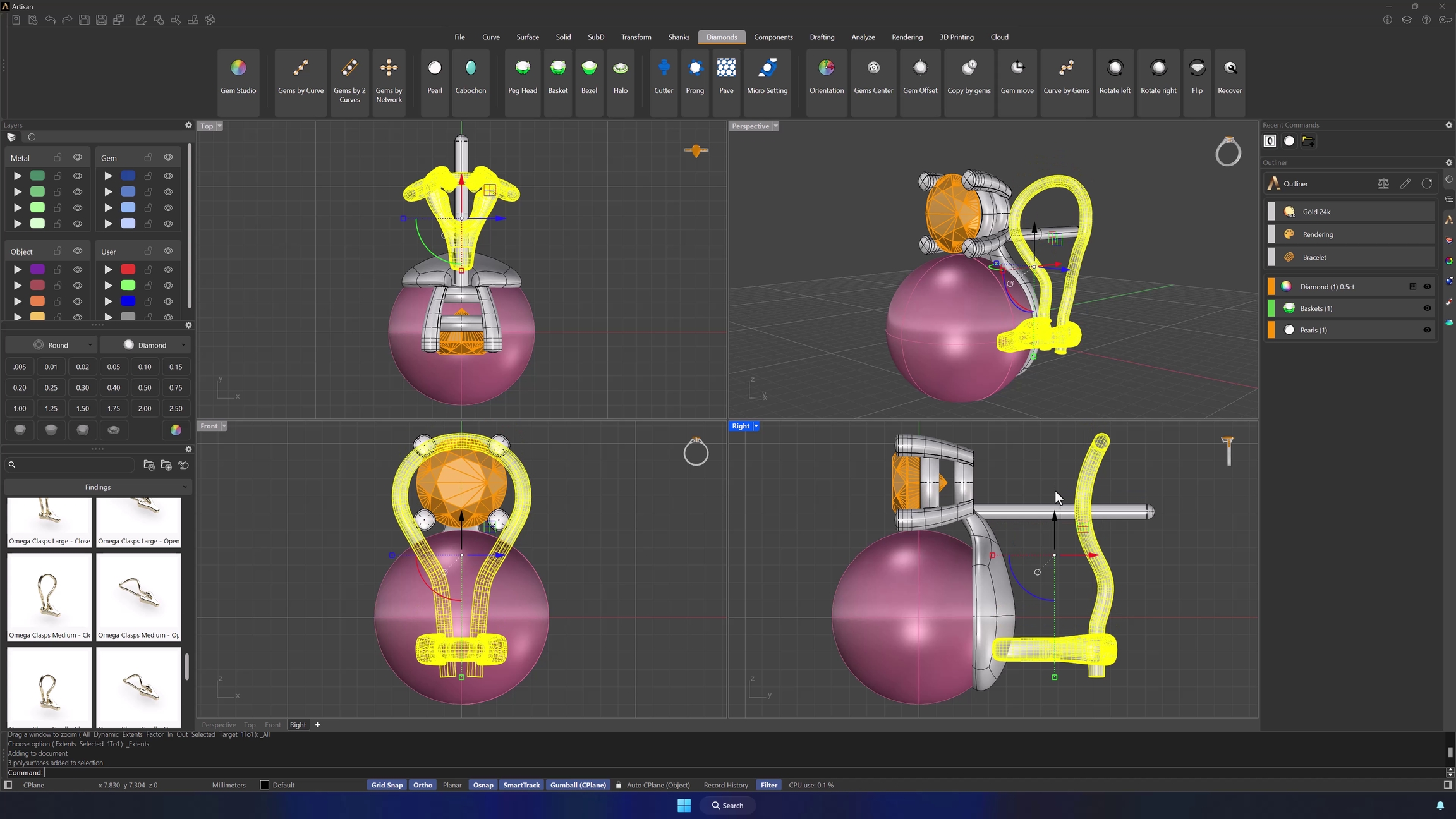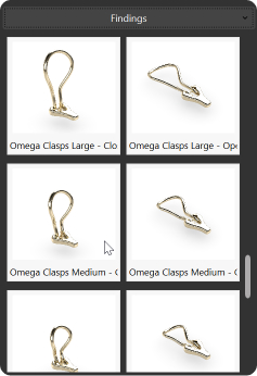 Also, add the clasp system: in the Findings category, select Omega Clasps Medium.
