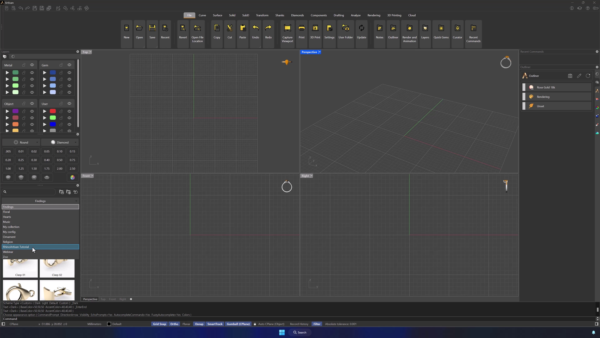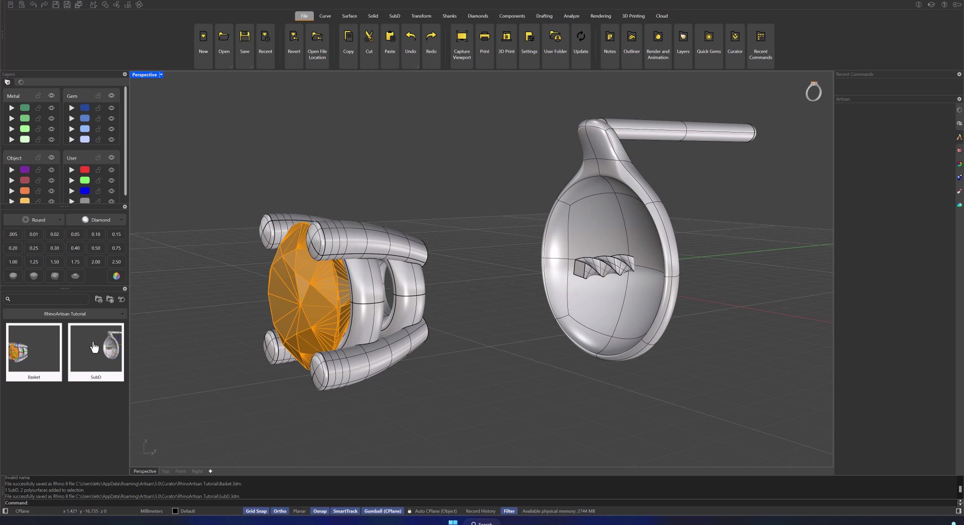 To verify that it has been saved, close and reopen RhinoArtisan. Once opened, go to the Curator panel and check that our category and elements are still there.