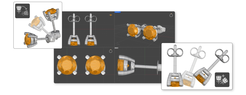 Design a pair of diamond stud earrings using RhinoArtisan.
