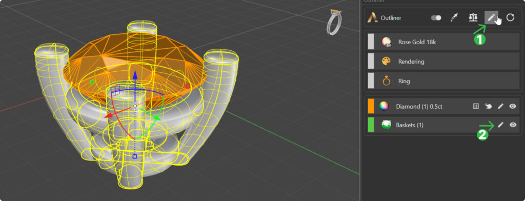 Objective: Learn how to customize the rails of a curved basket setting to support and strengthen the prongs using RhinoArtisan.