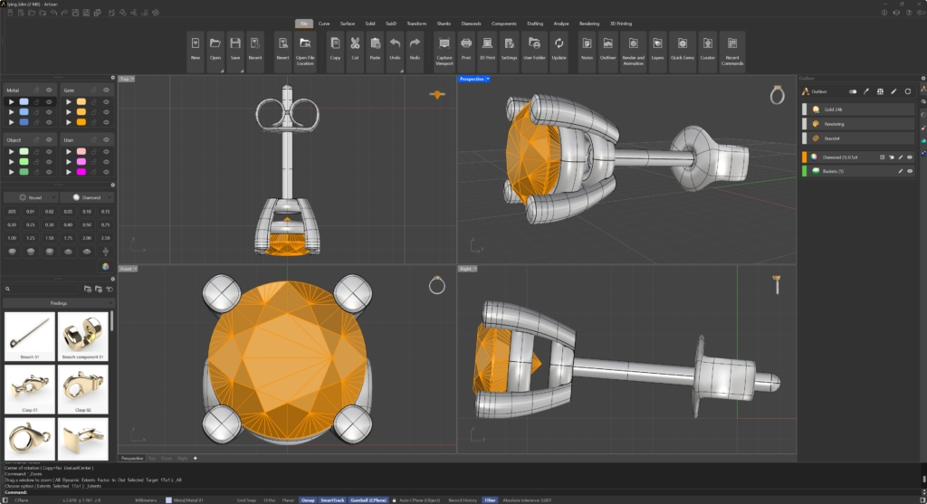 In the command bar, ensure that the plane on which you want to position the earring is correctly selected.