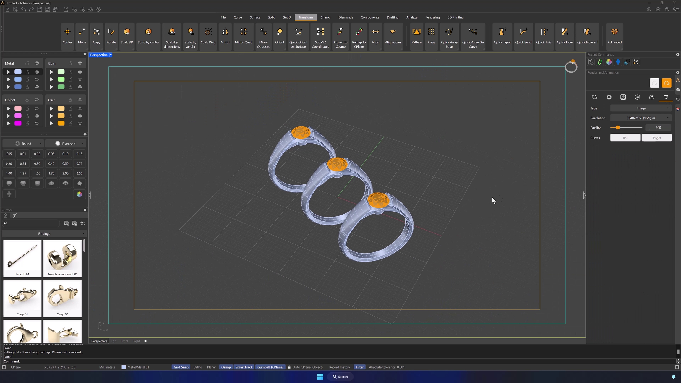 For the gems, apply the Diamond material.