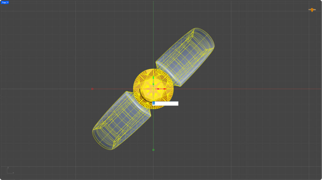From the "Top" view, select all elements and use the gumball to rotate 45 degrees.