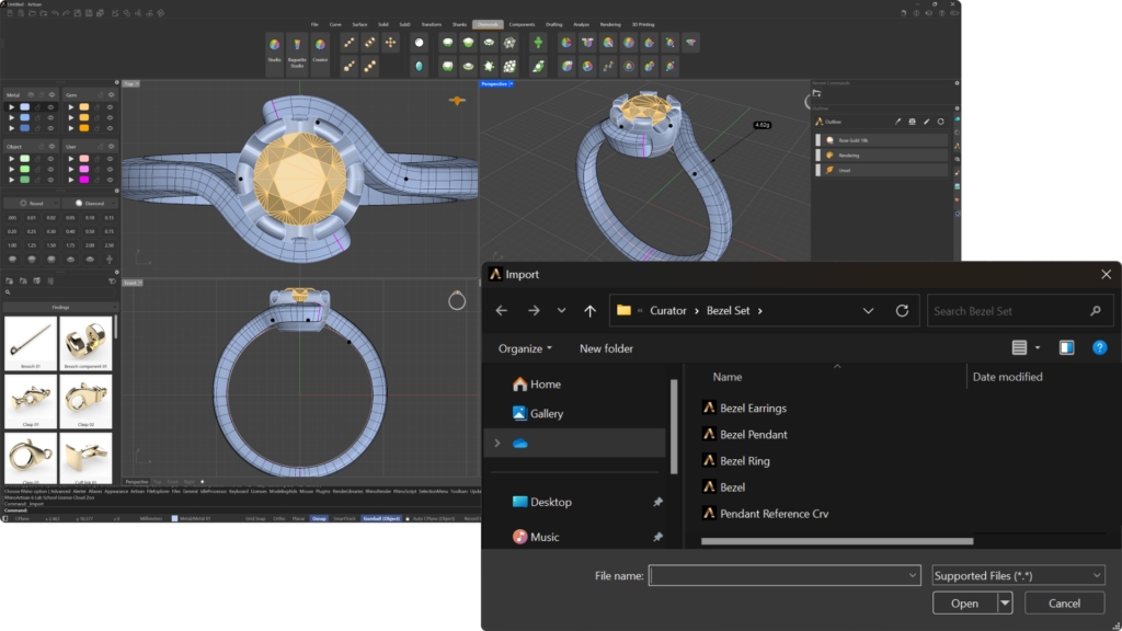 Learn the first steps to begin rendering. You’ll understand how to import and organize your model files directly into the RhinoArtisan workspace, whether by drag-and-drop or through the taskbar.