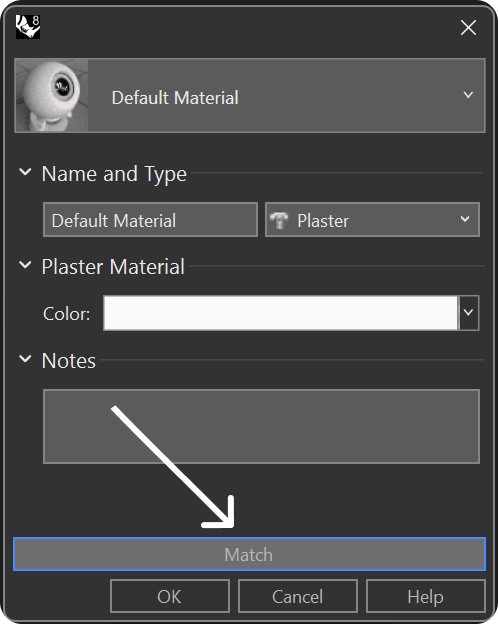 Another option is to perform a Match, which means to get the color of a certain element and apply it to the layer. To do this we press Match…, we click on the element from which we will obtain the material for the layer.