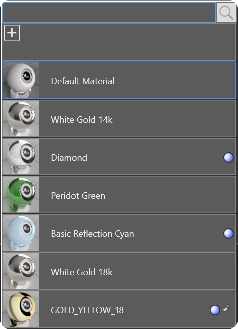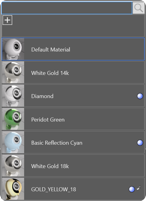 Clicking on the material icon will bring up the Layer Material window. From here, we can select a material for the layer, press the Default material will display a list from which we can either select a material or add a new one.