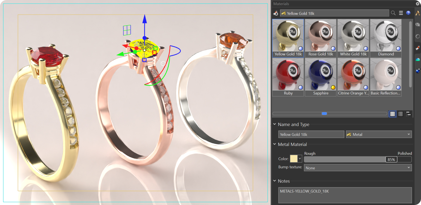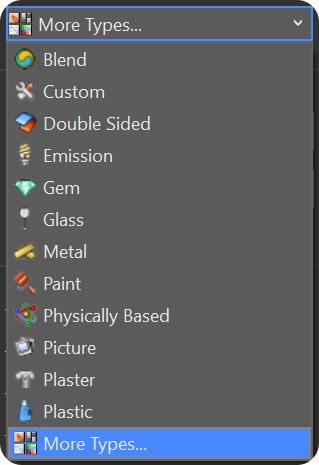 When a material is selected from the menu, its features and characteristics are displayed at the bottom of the screen. These properties can be customized as needed. Since each material type has its own distinct attributes, the options available for modification will vary accordingly.