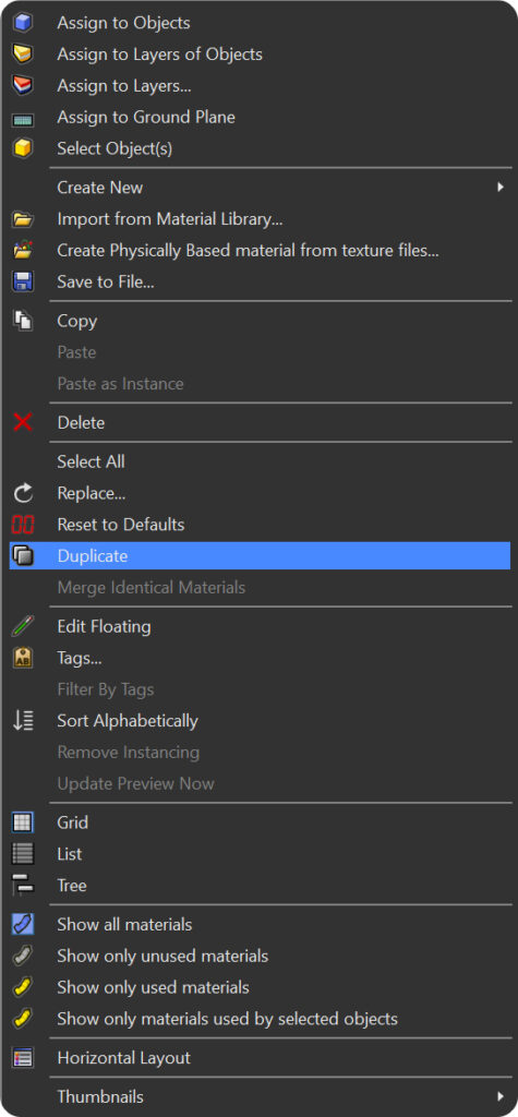 To do this, right-click on the material and select 'Duplicate.' Then, assign a new name to the duplicated material.