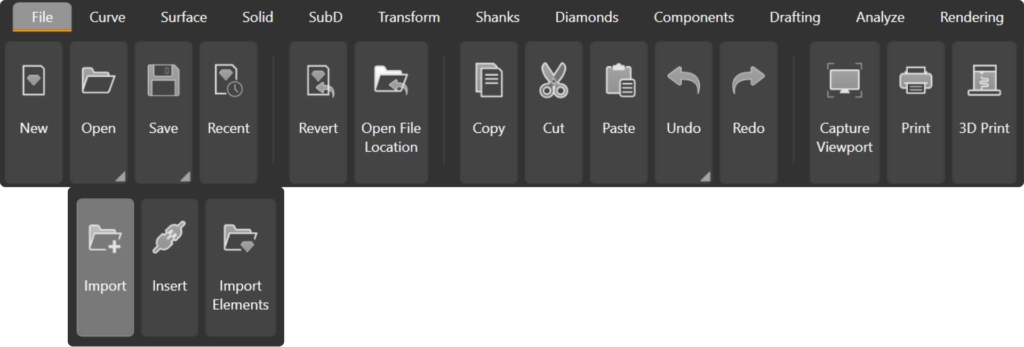 In the top left corner of the ribbon, you’ll also find the option to import.
