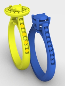 In this case we want one of the diamonds in the yellow model to have the Material of the blue model. To do this: