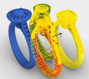 We have 4 rings in the scene, and we are only interested in working with one of them at the moment. The first thing we must do is select the rings we want to hide, we have two options: