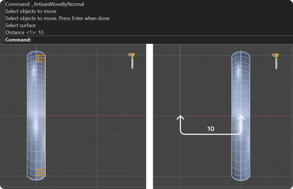 When pressing Move by Normal, we see how in the command bar it asks us to select an object.
