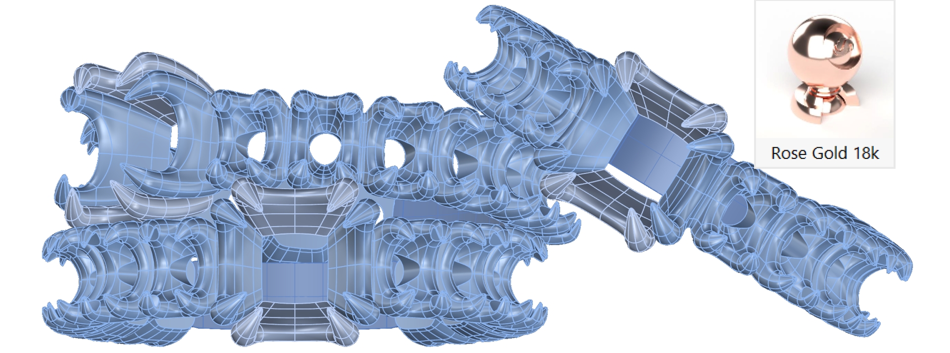 Select the metals and apply the Rose Gold 18k material to the entire metal layer.