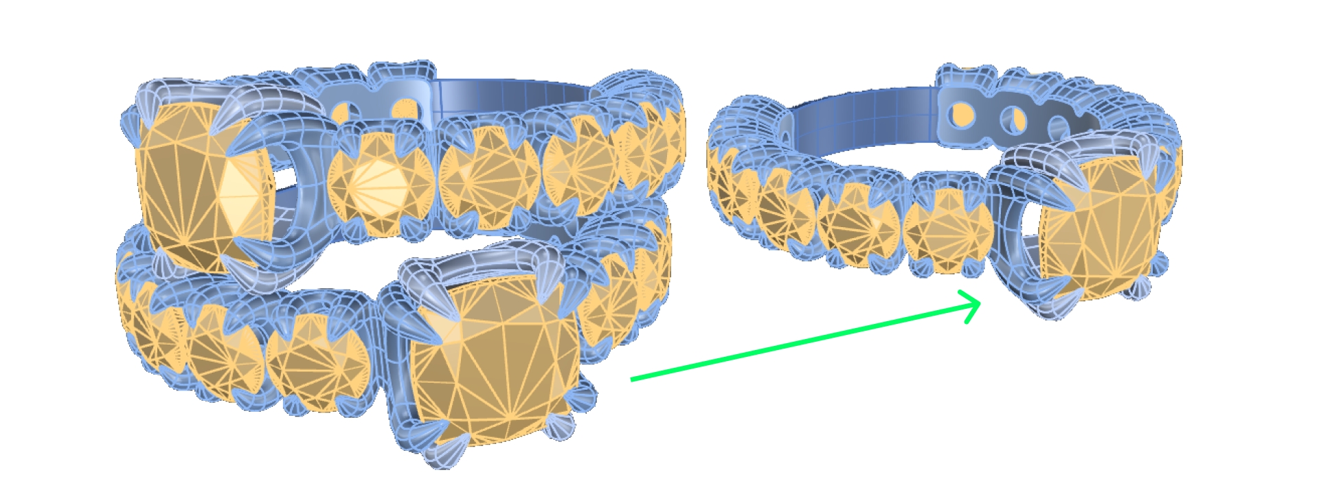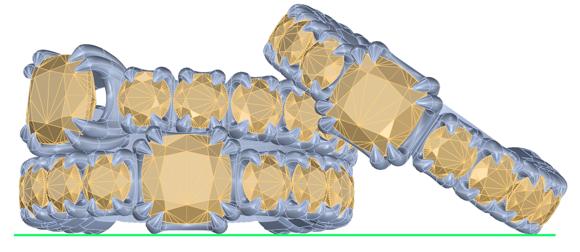 Rotate the ring as needed, ensuring it rests at the same height as the bottom ring and does not overlap with the others. This ensures realistic shadowing in the final render.