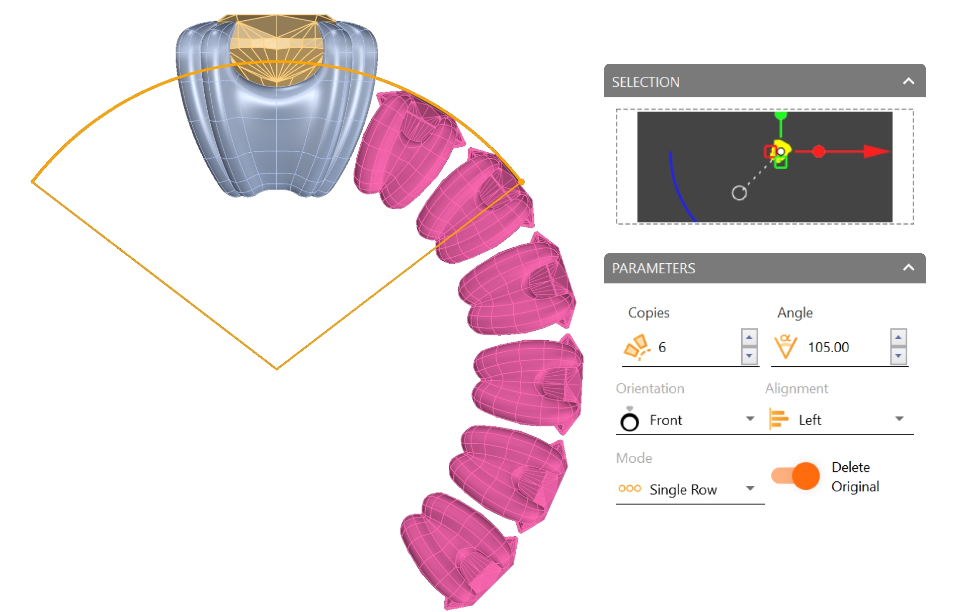 Set Number of Copies: 6, Angle: 105 degrees, and Alignment: Left.
